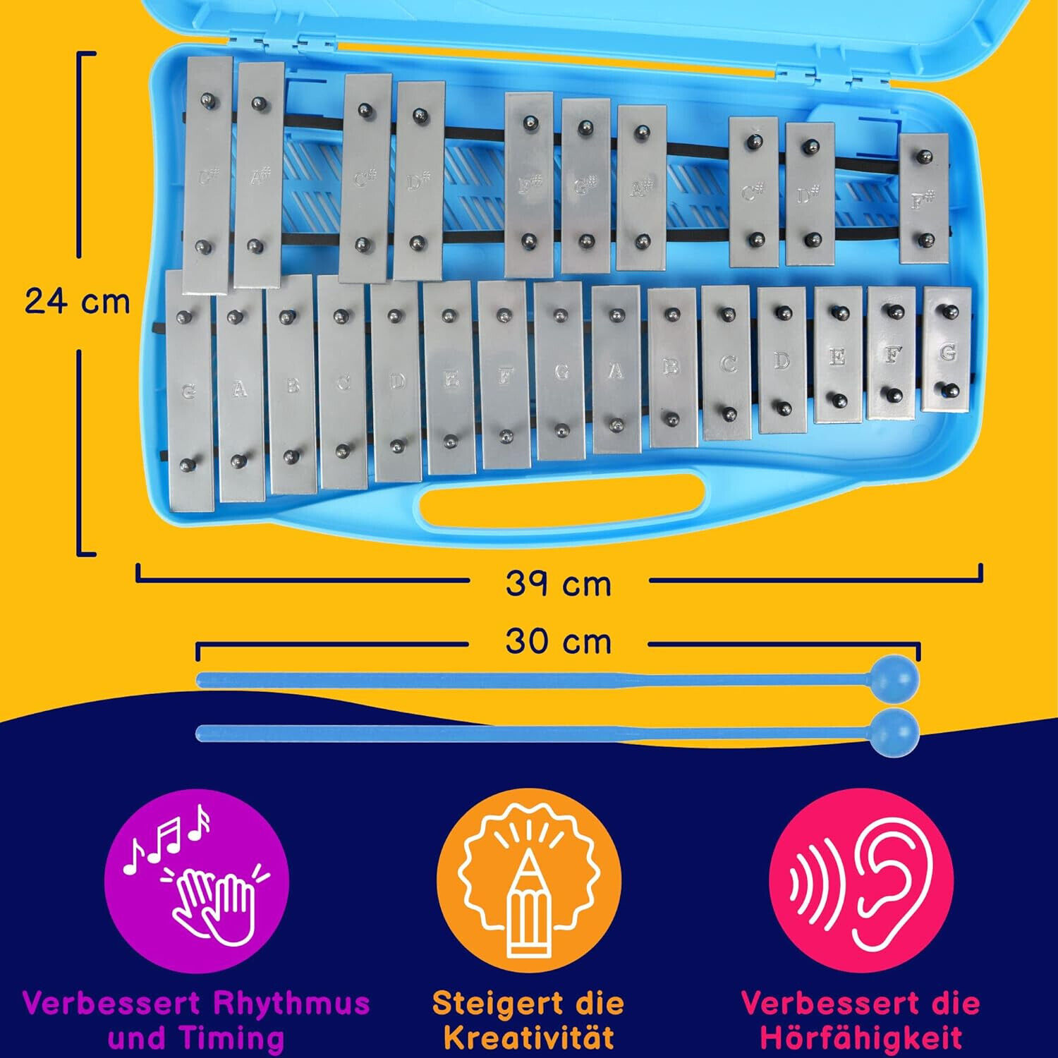 Preview: A-Star 25-Noten-Sopran-Chromatisches Glockenspiel-Xylophon im blauen Gehäuse