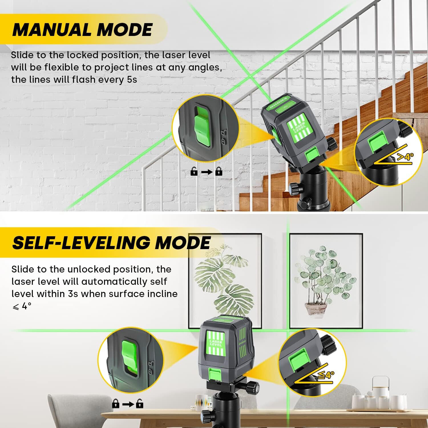 der Laser Wasserwaage mit Doppelmodulen, Selbstnivellierungsmodus:
