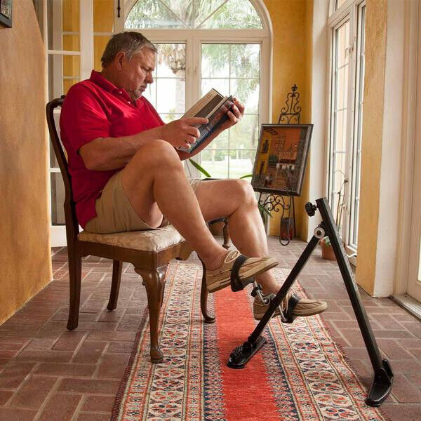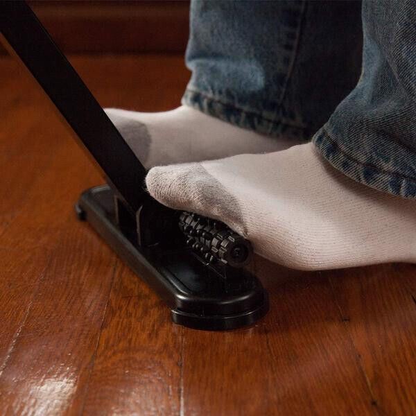 inklusive Fuß-Massage-Rollen, die die Durchblutung anregen. Und er ist
